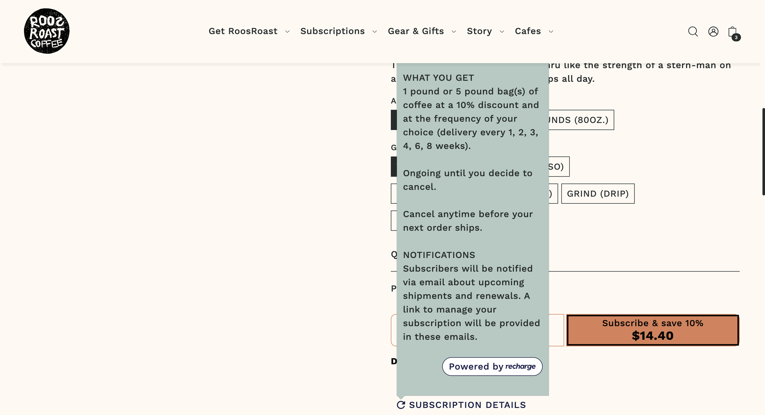 While shopping, Nina was surprised to see that Roosroast now offers a subscription service. Perfect! Now she doesn’t have to worry about her coffee running out. But how does this work?