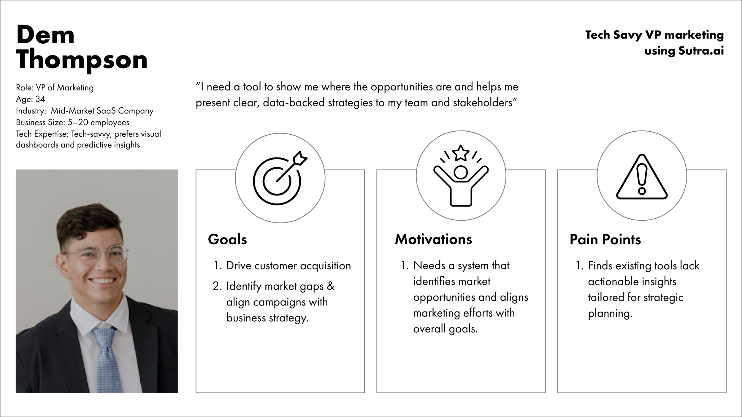 Created user personas, based on existing research that Sutra had on their consumer, to better understand pain points and needs.